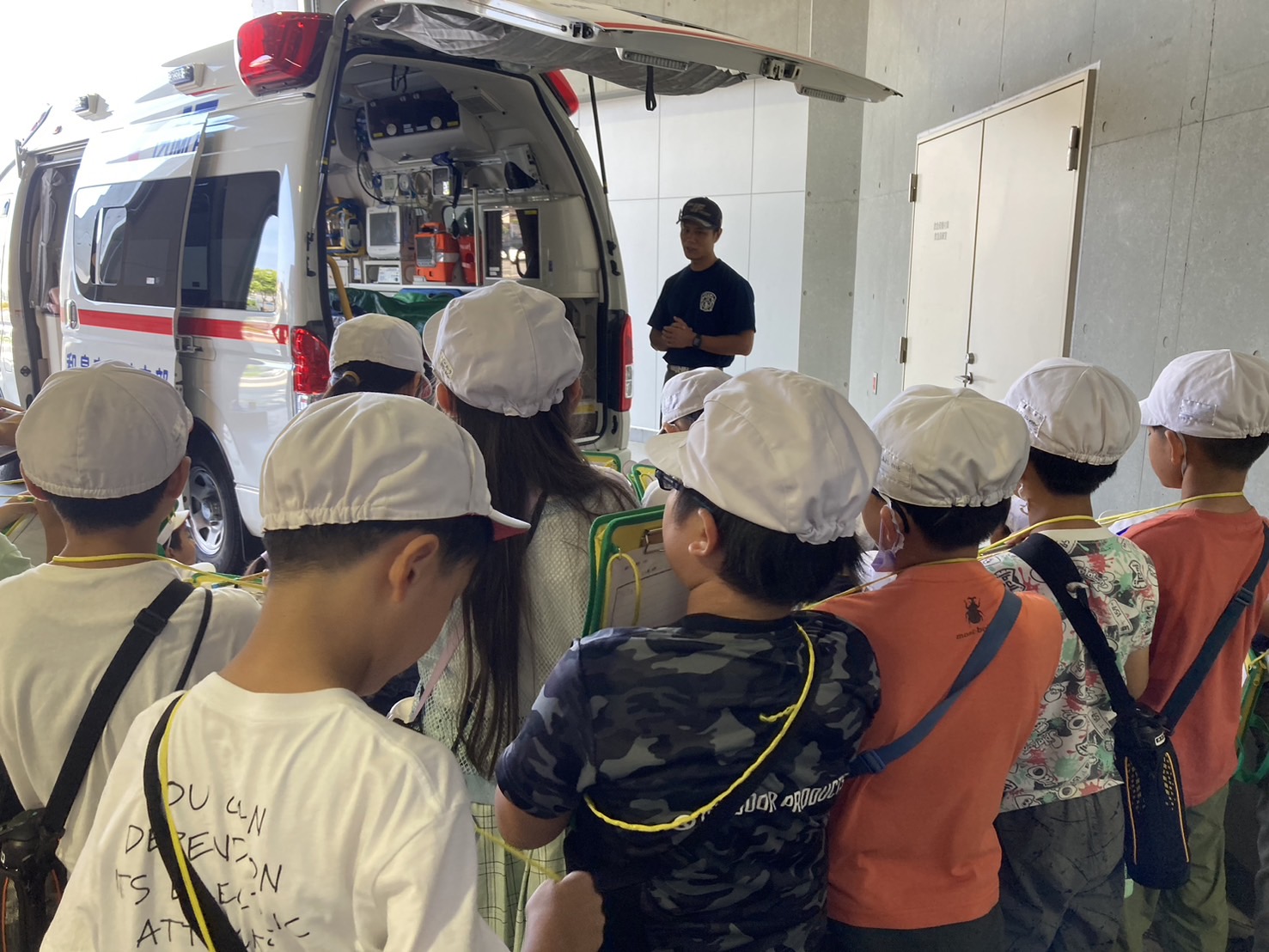 今日は三年生が学校のすぐ隣にある和泉市中央消防署に社会見学に行きました。救急車や消防車のしくみを教わったり、指令室を見せてもらったりしました。