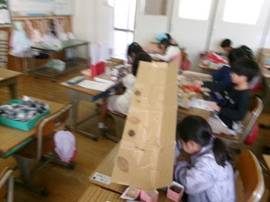 1年生が秋見つけで見つけてきたものを使ってのおもちゃ作りを終えて、振り返りを書いていました。書きながら秋をもう一度堪能していました。